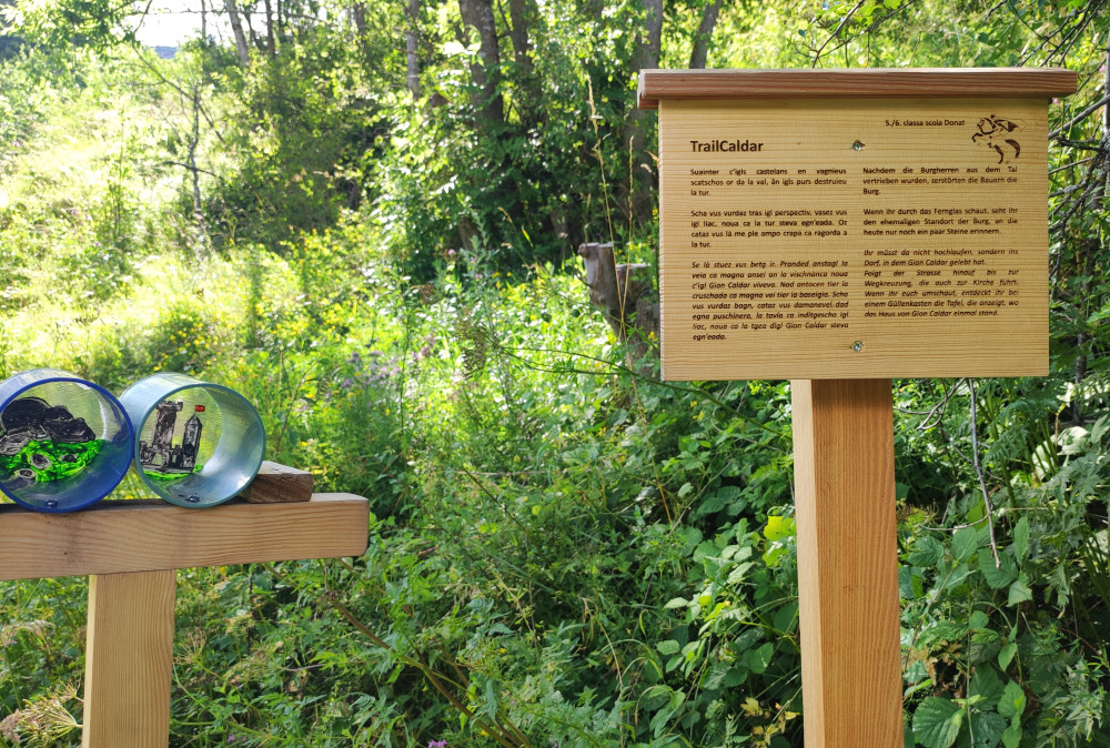 Der TrailCaldar ist ein malerischer Rätselweg, der von Andeer nach Fardün führt. Unterwegs erfährst du an zwölf Stationen, anhand der Sage von Gion Caldar, wie das Schams seine Freiheit erlangte.