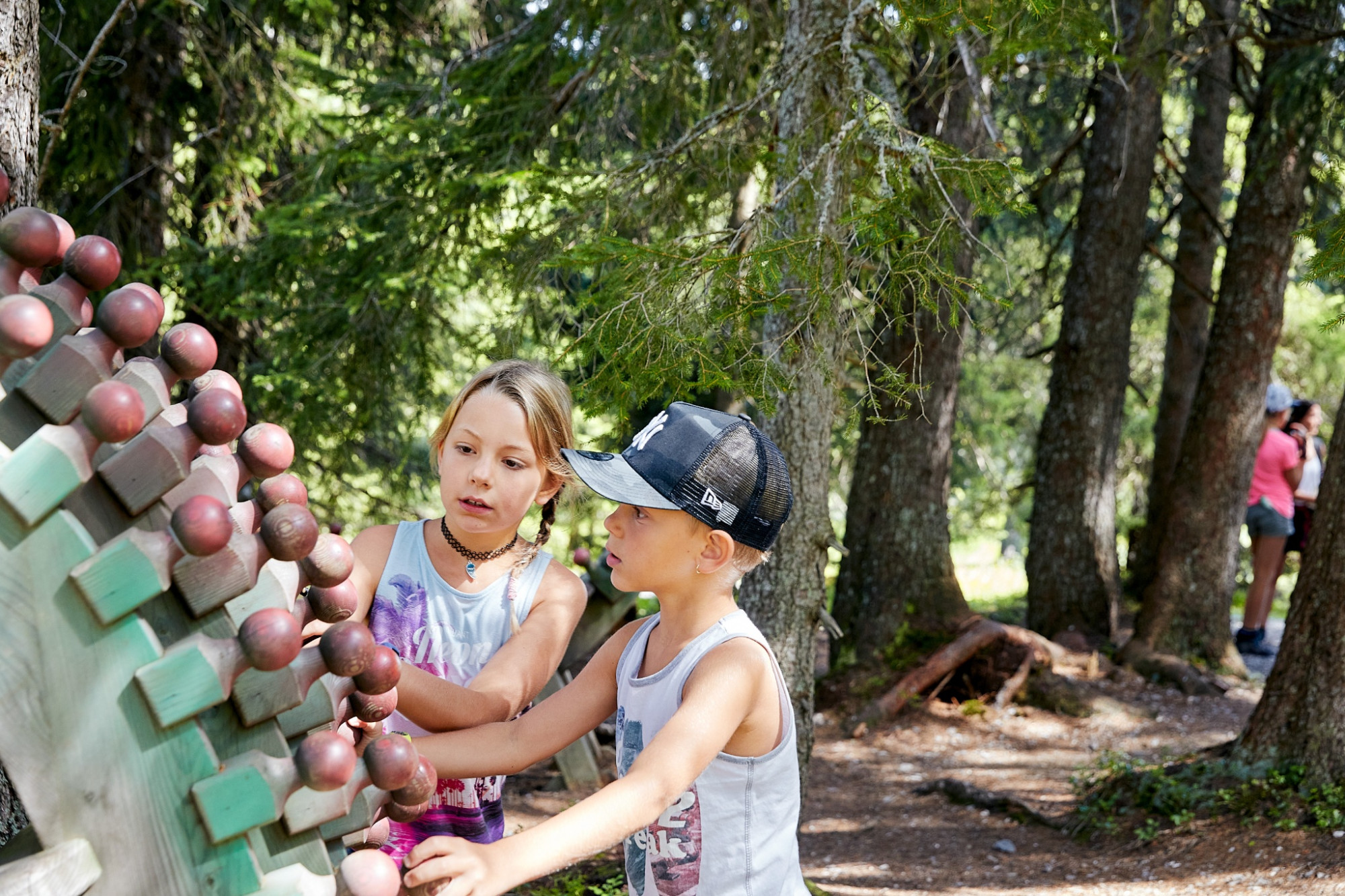 À 17 stations d'expérience, on découvre et expérimente le thème de la tourbière avec tous ses sens, toujours accompagné par la libellule espiègle Mira. Saviez-vous que la droséra est une plante carnivore qui se nourrit d'insectes du marais ? Explorez les traces et sons des animaux, comparez les parfums des fleurs, et dès que vous marchez pieds nus sur le sable et la mousse, les soucis du quotidien s'envolent au loin. Plusieurs fauteuils suspendus invitent à une pause agréable sous les arbres.