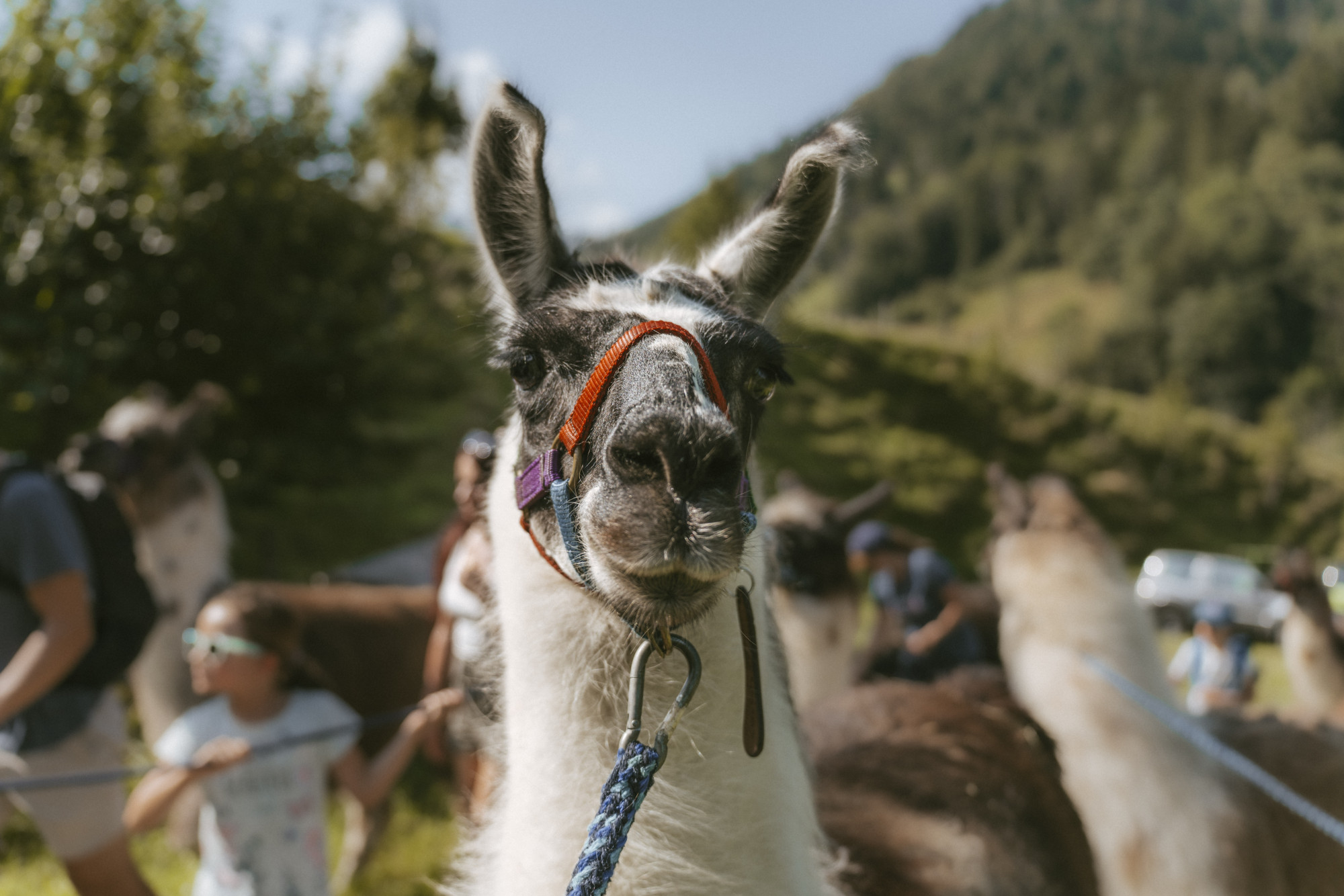 Mit der Älplerin erleben Sie einen Halbtag auf der Lamaalp und führen deren zottlige, vierbeinige Bewohner auf einen Spaziergang.