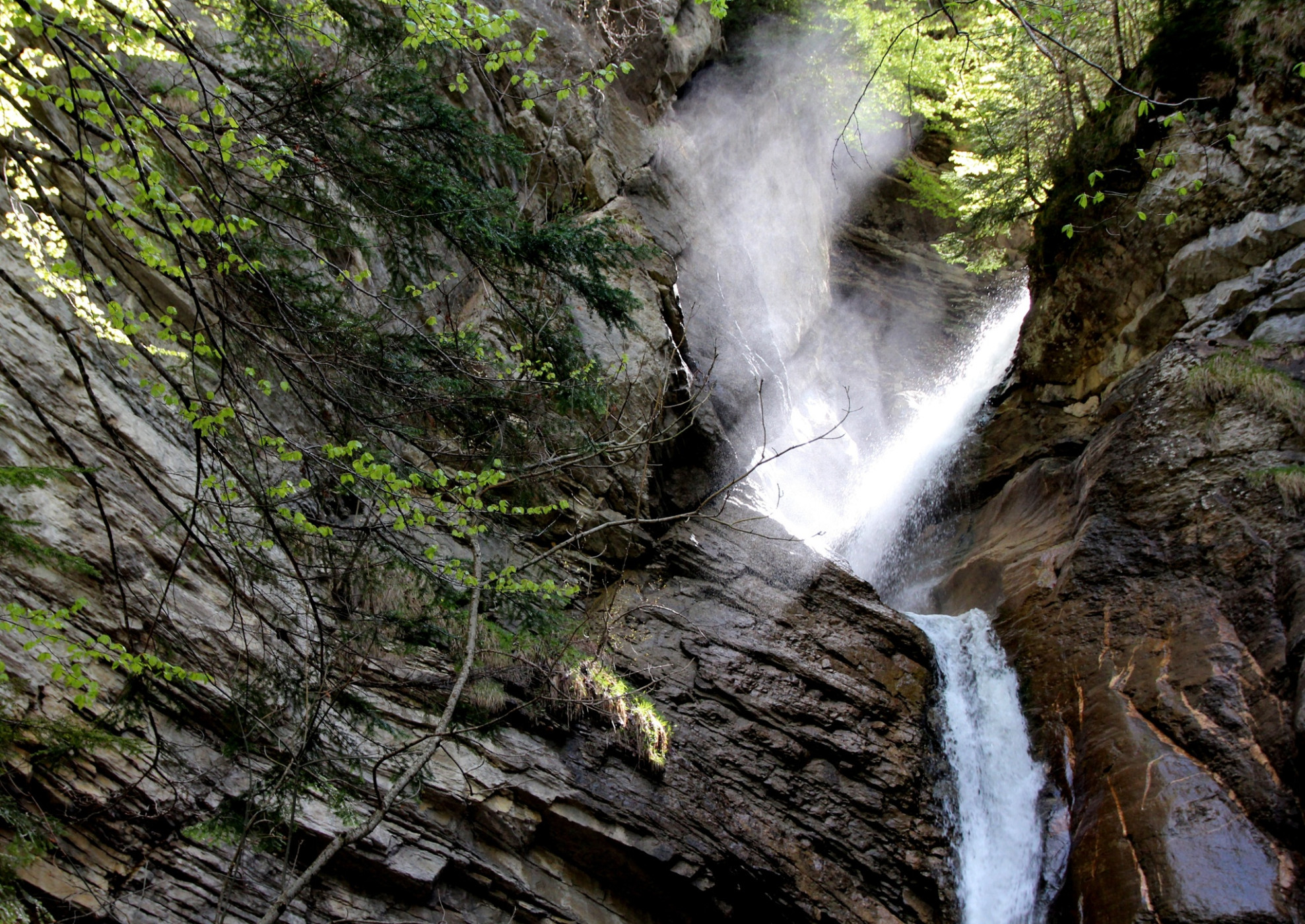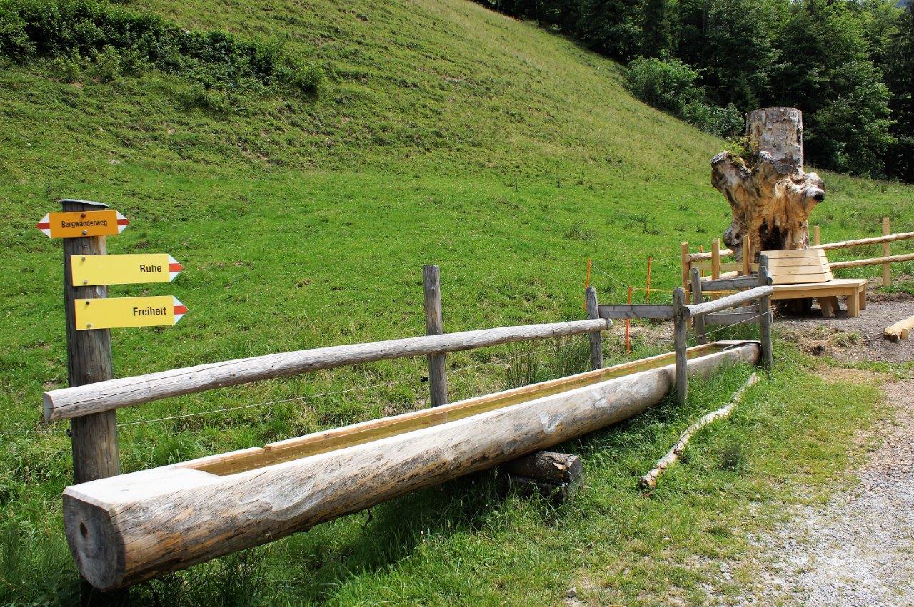 Sur le chemin, vous pouvez faire un détour vers la cascade ou l'aire de pique-nique et de grillades. Suivez le petit chemin naturel dans la longue courbe à gauche. Vous entendrez bientôt le bruit de la cascade.