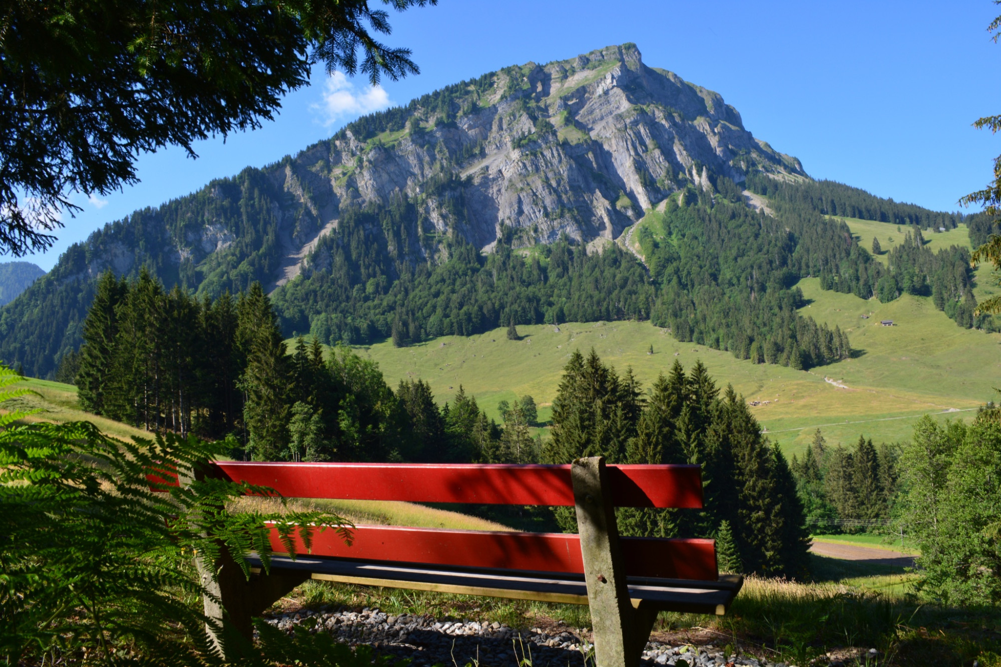 Le parcours adapté aux poussettes commence au restaurant Gfellen. Suivez les premiers 200 mètres de la route en direction de Glaubenberg. Le chemin vous mène ensuite dans un bois. Vous pouvez flâner paisiblement sur les 800 mètres suivants le long de la Große Entle jusqu'au pont Stillaub. Ce n'est plus loin ! Le quart d'heure suivant vous conduit à l'alpage Brüedere.