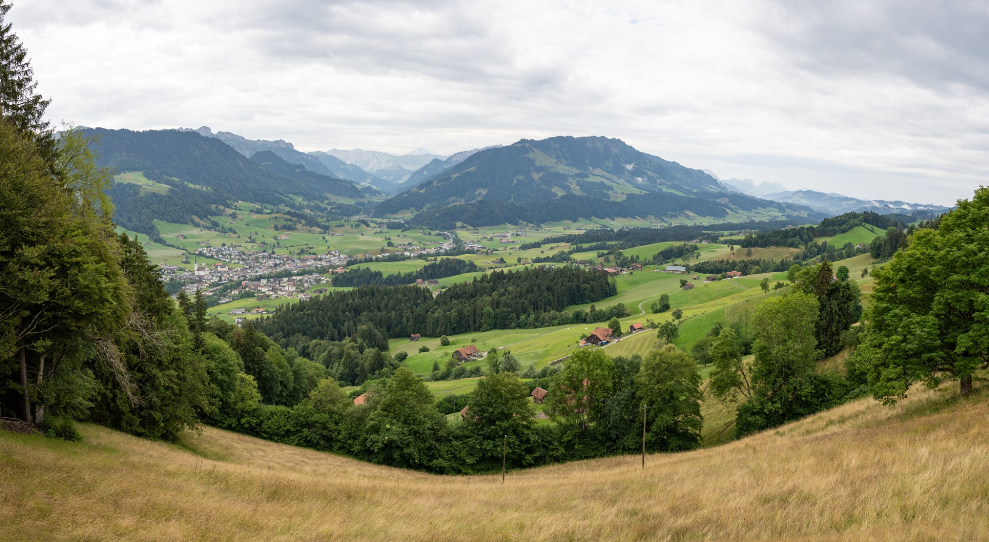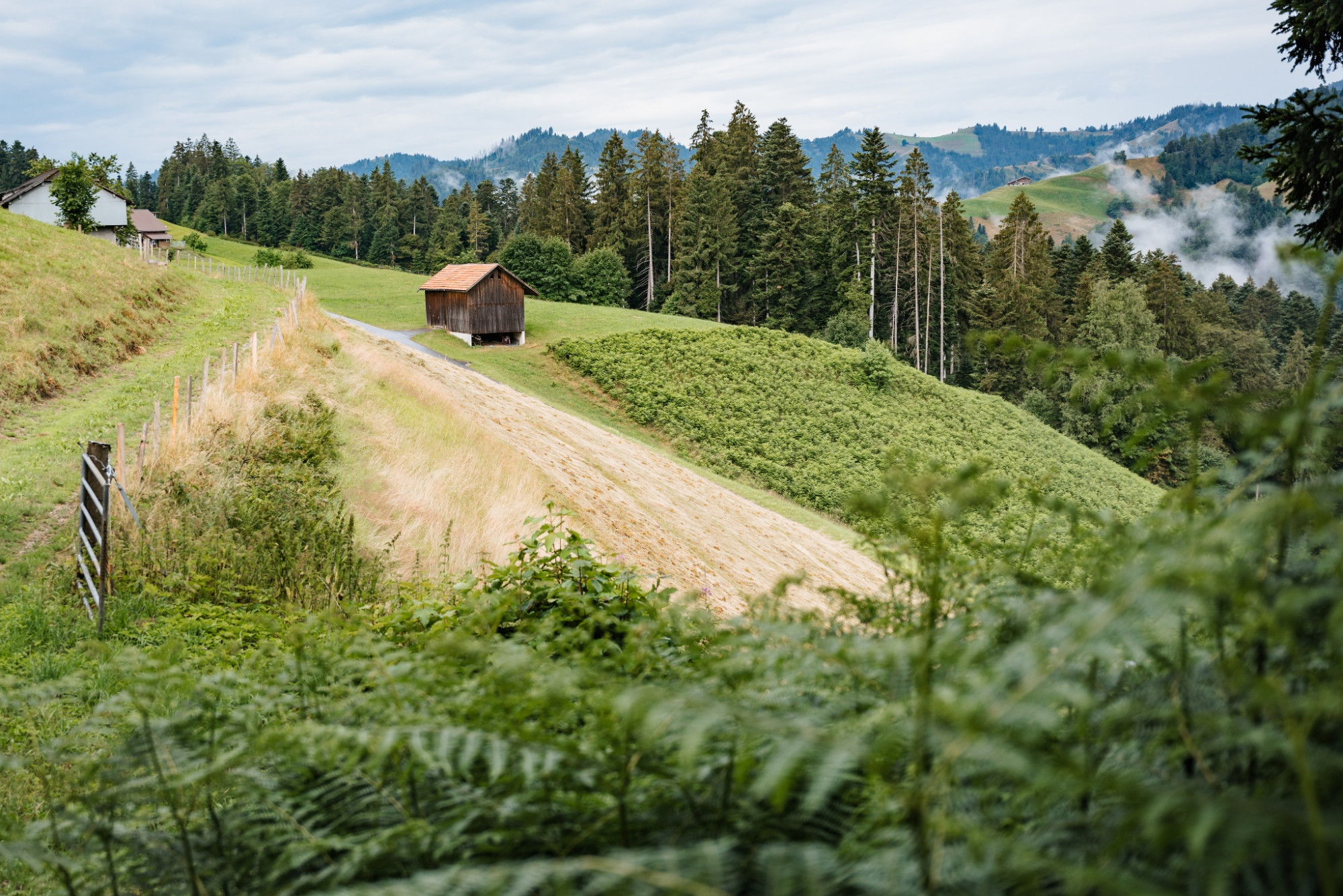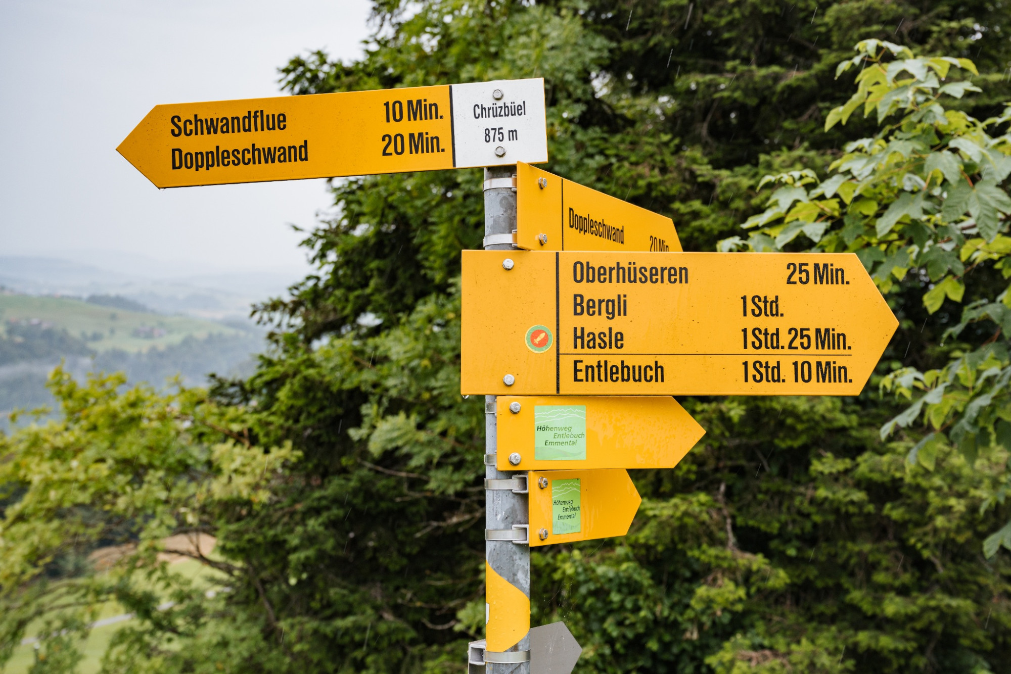 Après le premier bois, vous vous trouvez au-dessus du village d'Entlebuch et pouvez admirer une belle vue sur le village avec son centre de distribution impressionnant, les éoliennes encore plus impressionnantes sur l'autre versant de la vallée ainsi que les sommets charmants de Risete, Schafmat et autres. Avec cette vue, vous continuez votre marche en direction de Habschwanden / Hasle et bientôt vous entrez à nouveau dans une longue section forestière. L'odeur de la mousse et de la terre, ainsi que le bruissement apaisant des feuilles vous accompagnent à chaque pas. À Schüpfergg, vous quittez à nouveau la forêt pour le terrain dégagé et êtes récompensé par une vue incroyable. À droite, la vaste région de Napf, à gauche le village de Schüpfheim avec Farnere, Beichle et entre les deux une vue lointaine jusqu'au Brienzergrat et aux Alpes bernoises. Pour le 100e anniversaire de Schüpfheim Tourismus, une immense balançoire Swing the World a été installée ici, avec vue directe sur le village et les montagnes environnantes. Il faut bien sûr l'essayer immédiatement !