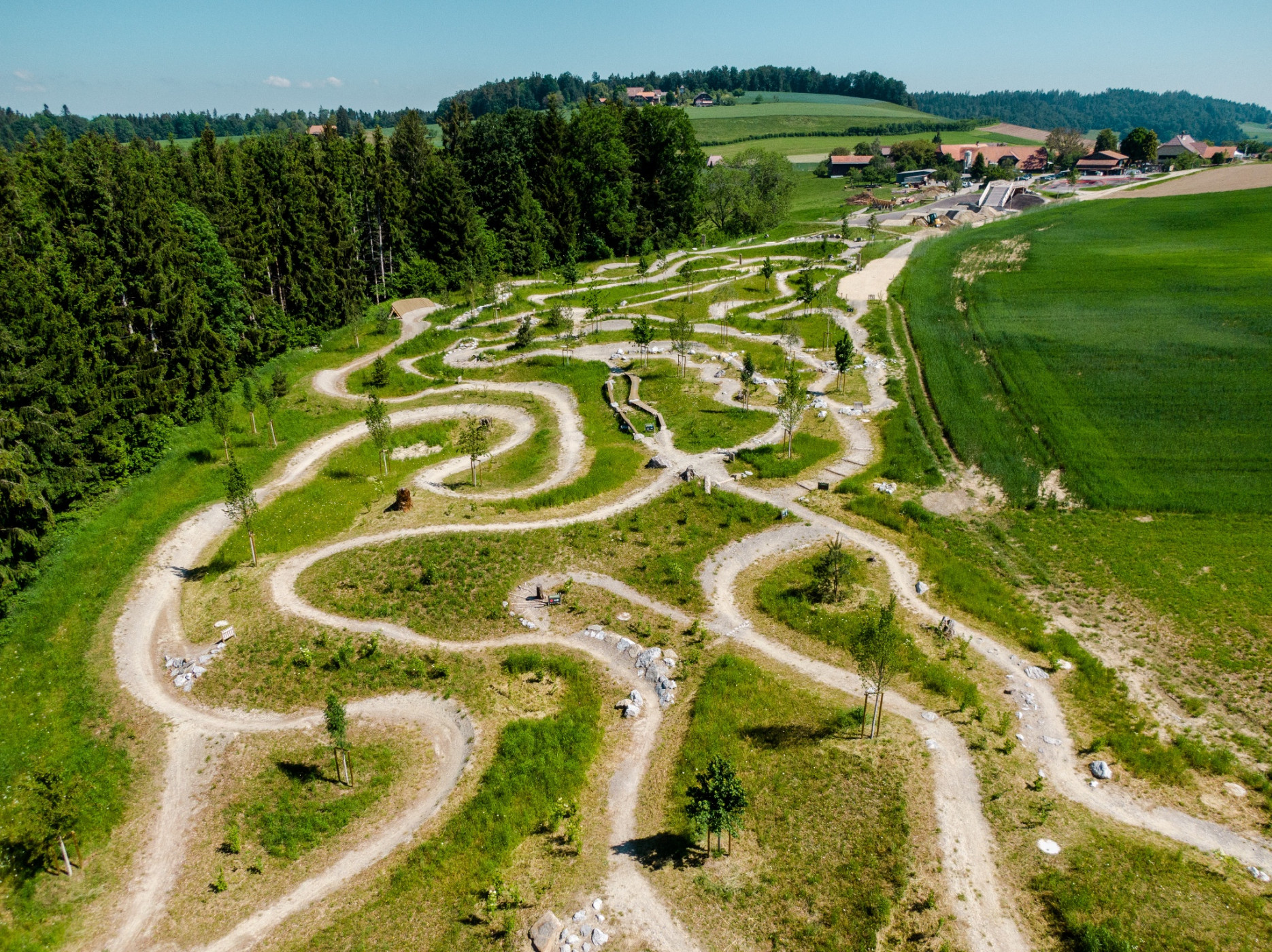 Jump-lines, pumptracks, escaliers, virages à pic, parcours d'apprentissage et de découverte : sur près de 2'000 mètres carrés, le Swiss Bike Park allie les besoins du sport de haut niveau et du sport de masse. Le parc est mis gratuitement à la disposition de tous pour les entraînements.