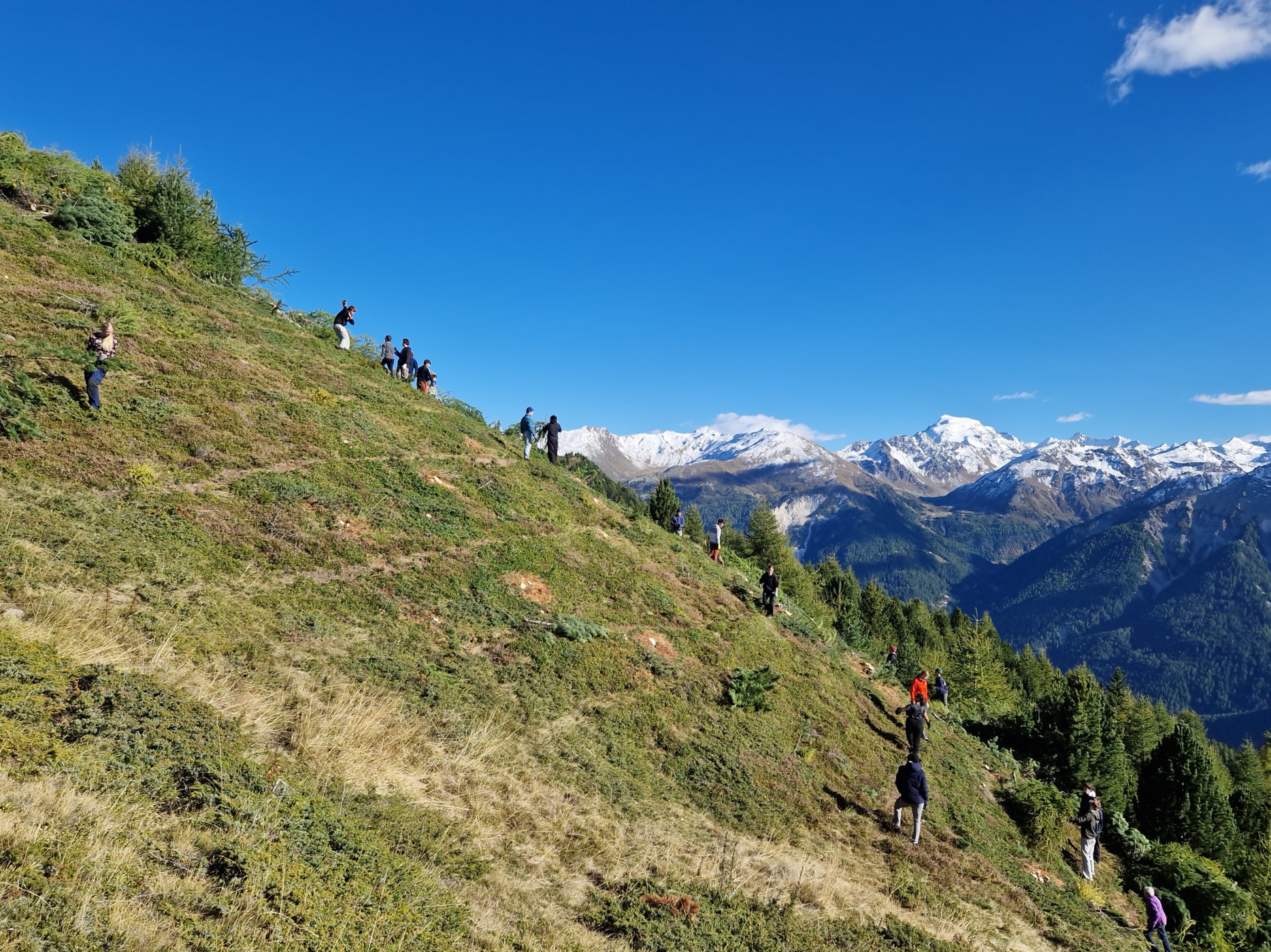 Begleitet von fachkundigen Personen arbeiten wir mit der Klasse direkt in der Natur und dort, wo unsere Hilfe benötigt wird. Gemeinsam pflegen wir Alpweiden, räumen und erstellen Wildschutzzäune, sorgen für den Unterhalt ehemaliger Bewässerungskanäle, pflegen Hecken und Wanderwege – was gerade anfällt. Da wir uns bei den Arbeiten im Gelände bewegen und in den Bergen das Wetter für die Ausführung der Arbeiten zentral ist, müssen wir oft kurzfristig entscheiden, welche Arbeiten ausgeführt werden können.