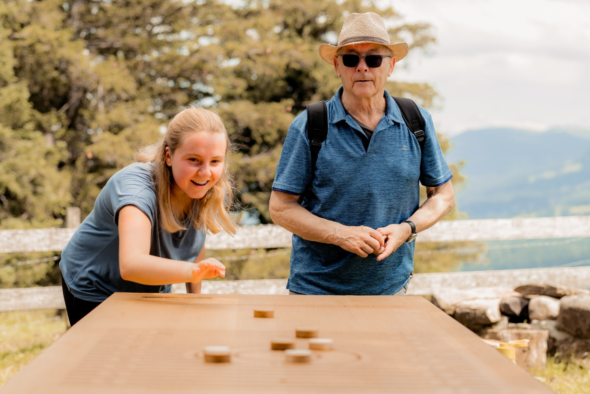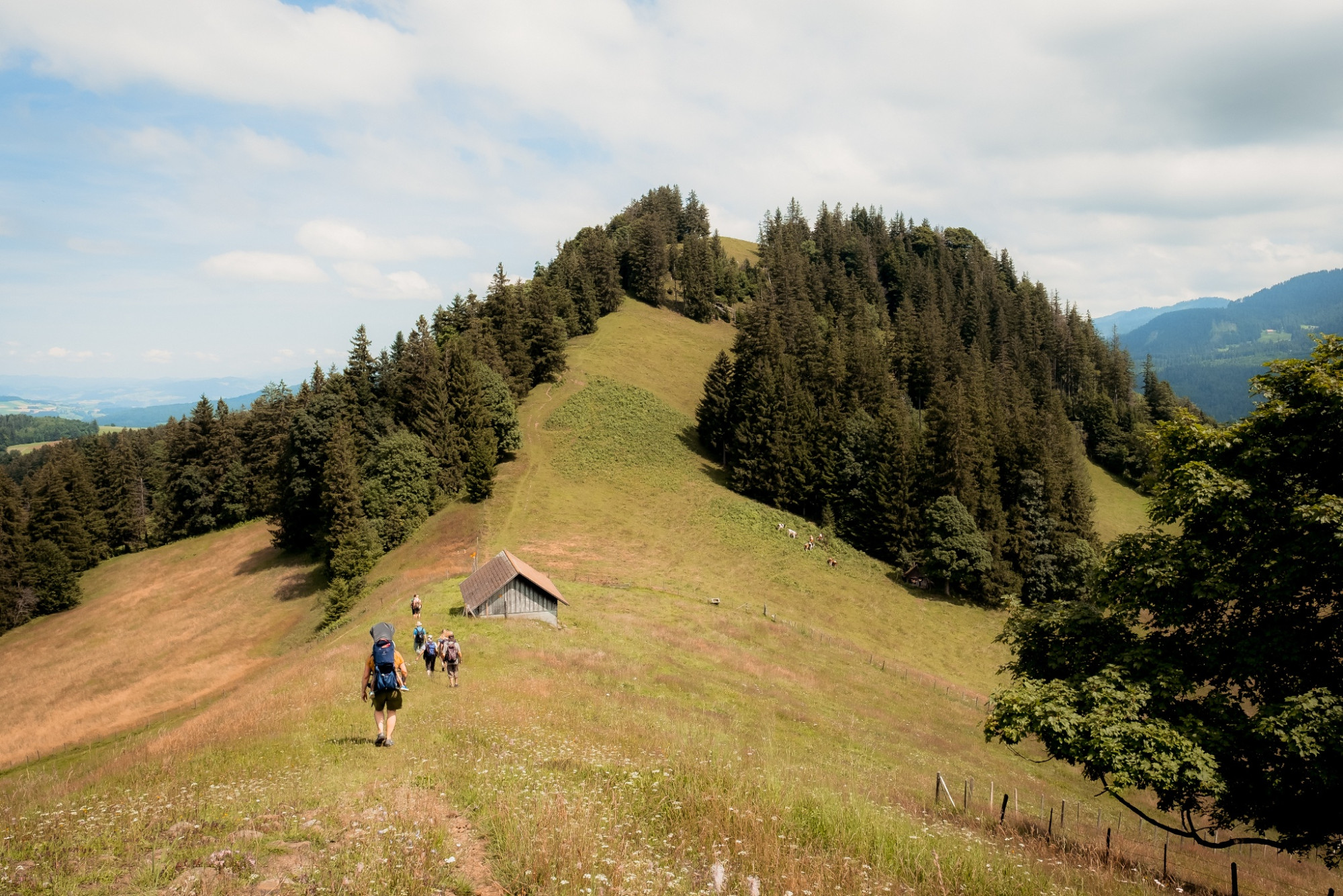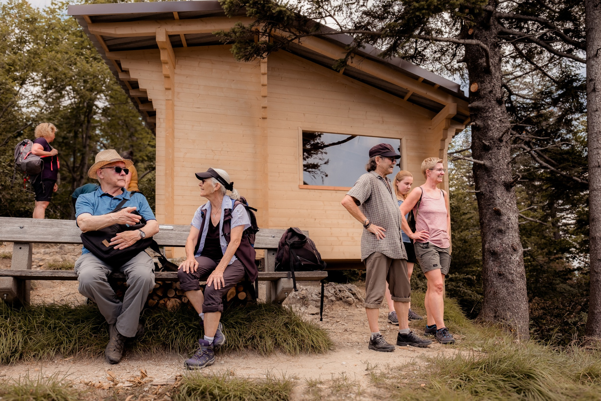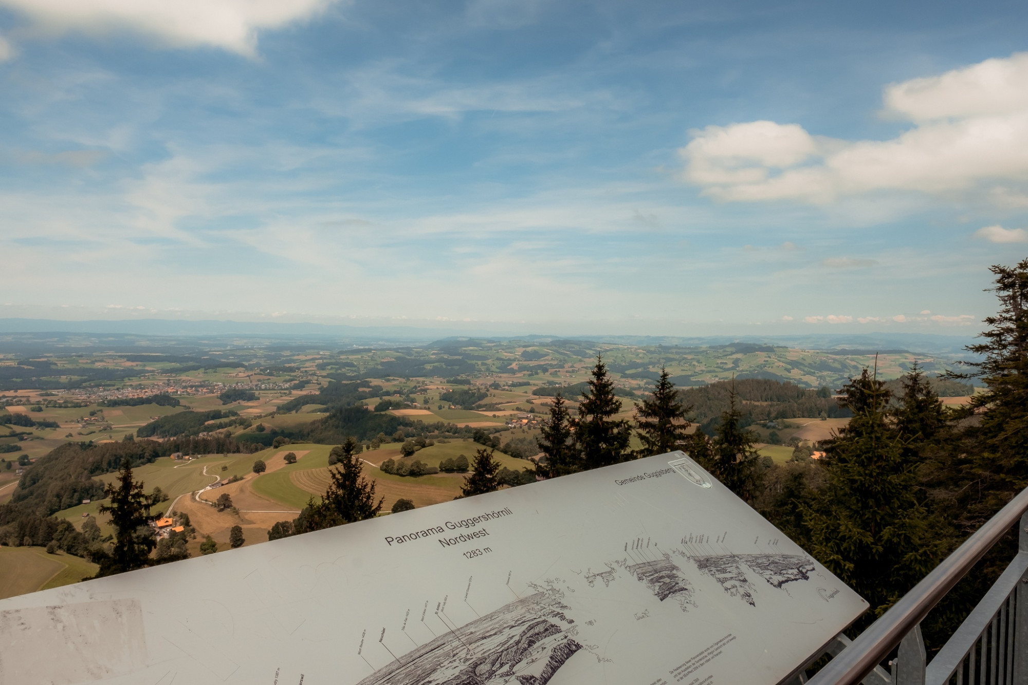 Le long du chemin, plusieurs lieux de halte invitent à se détendre et s’émerveiller. Les deux premiers se trouvent sous la forêt et sur la crête devant le rocher de conglomerat caractéristique, où se trouve aussi un emplacement pour griller des saucisses. De la plateforme d’observation du Guggershorn, le chemin continue vers l’est en direction de Schwendelberg. Sur la selle entre le Guggershorn et Schwendelberg se trouve une autre aire de repos où l’on peut profiter d’une vue à couper le souffle. L’ascension jusqu’au point le plus haut, le Schwendelberg, est récompensée par un autre magnifique point de vue et un emplacement pour griller.