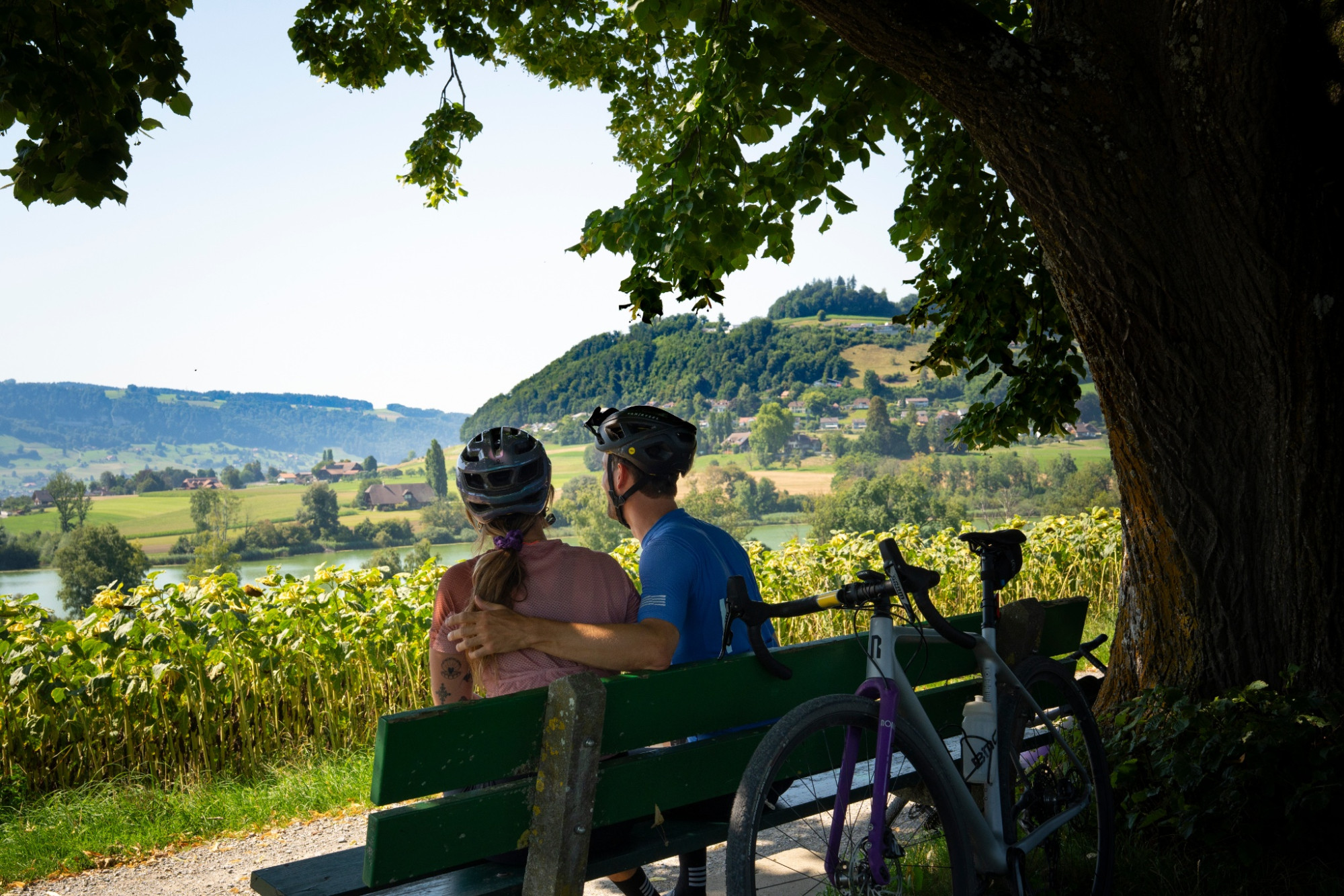 Naturpark Gantrisch - Il percorso gravel ad anello va dal Bundesplatz attraverso la città vecchia di Berna, passando per il Belpmoos fino a Belp. Da lì prosegue con una dura salita su sentieri boschivi fino al punto panoramico Chutzen. Successivamente si prosegue via Gerzensee fino a Wattenwil e poi in piano lungo la Gürbe, tornando a Belp e Berna. Il percorso si snoda su strade secondarie e in gran parte su strade forestali, ghiaiose e di campagna, ed è in parte piuttosto accidentato e polveroso. La vista sulle Alpi e Prealpi bernesi, così come le possibilità di rinfrescarsi lungo la Gürbe e sull'Aare, completano il divertimento gravel.