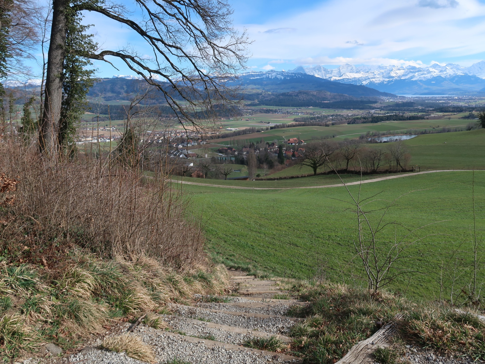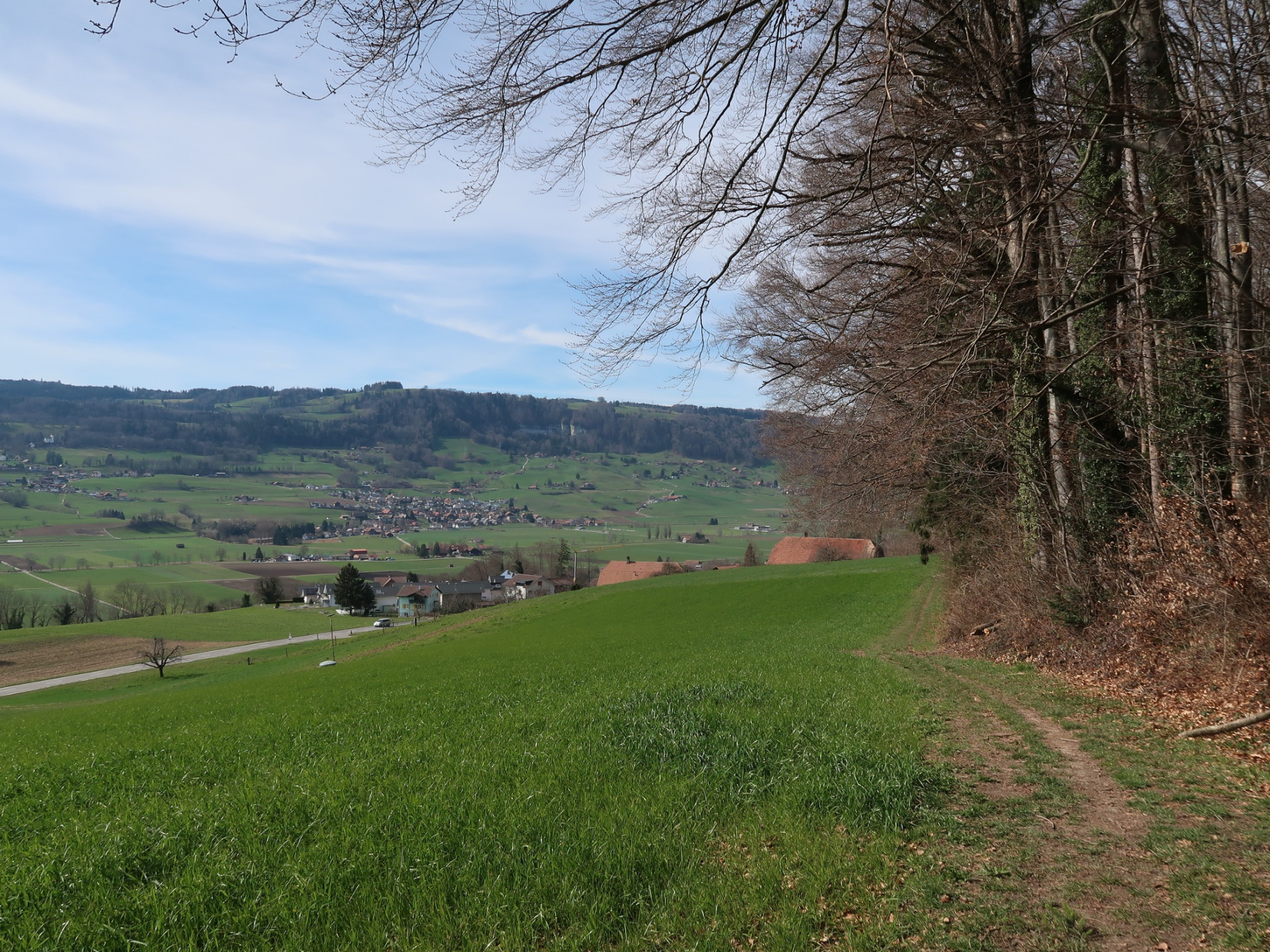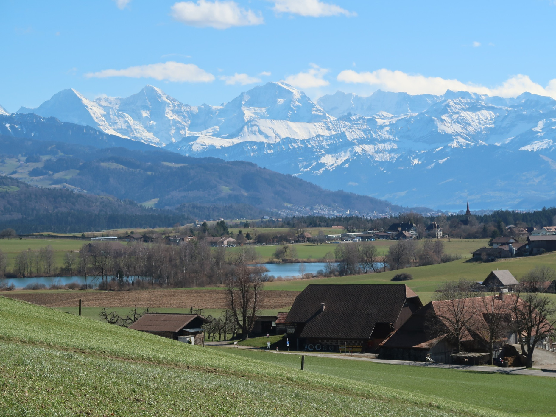 Ora si scende sul sentiero escursionistico con vista sulla valle dell'Aare e sul paese di Münsingen fino a Rohrholz. Un luogo pic-nic con focolare, panche per riposare e un riparo, con una buona vista su Gerzensee, invita a una pausa prima della ripida discesa nel paese. Dopo aver raggiunto il paese di Gerzensee, il sentiero prosegue verso ovest. Ai piedi del Belpberg, lungo il bordo del bosco, il sentiero procede verso nord in direzione di Toffen. Da qui si può scegliere comodamente il treno per il viaggio di ritorno.