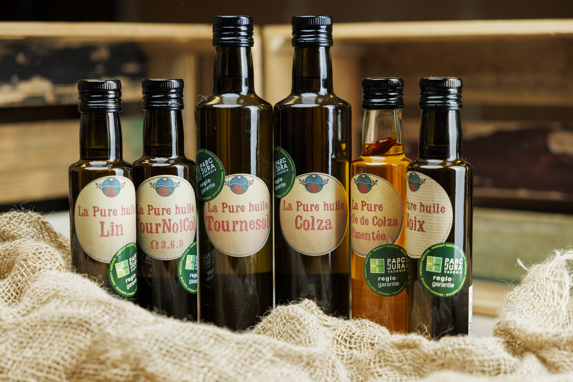 Parc naturel régional Jura vaudois - Tournesol, lin, colza, colza piment, noix : faites votre choix ! Les huiles du domaine Le Pontet relèveront agréablement vos plats, pour le plus grand plaisir de vos papilles.