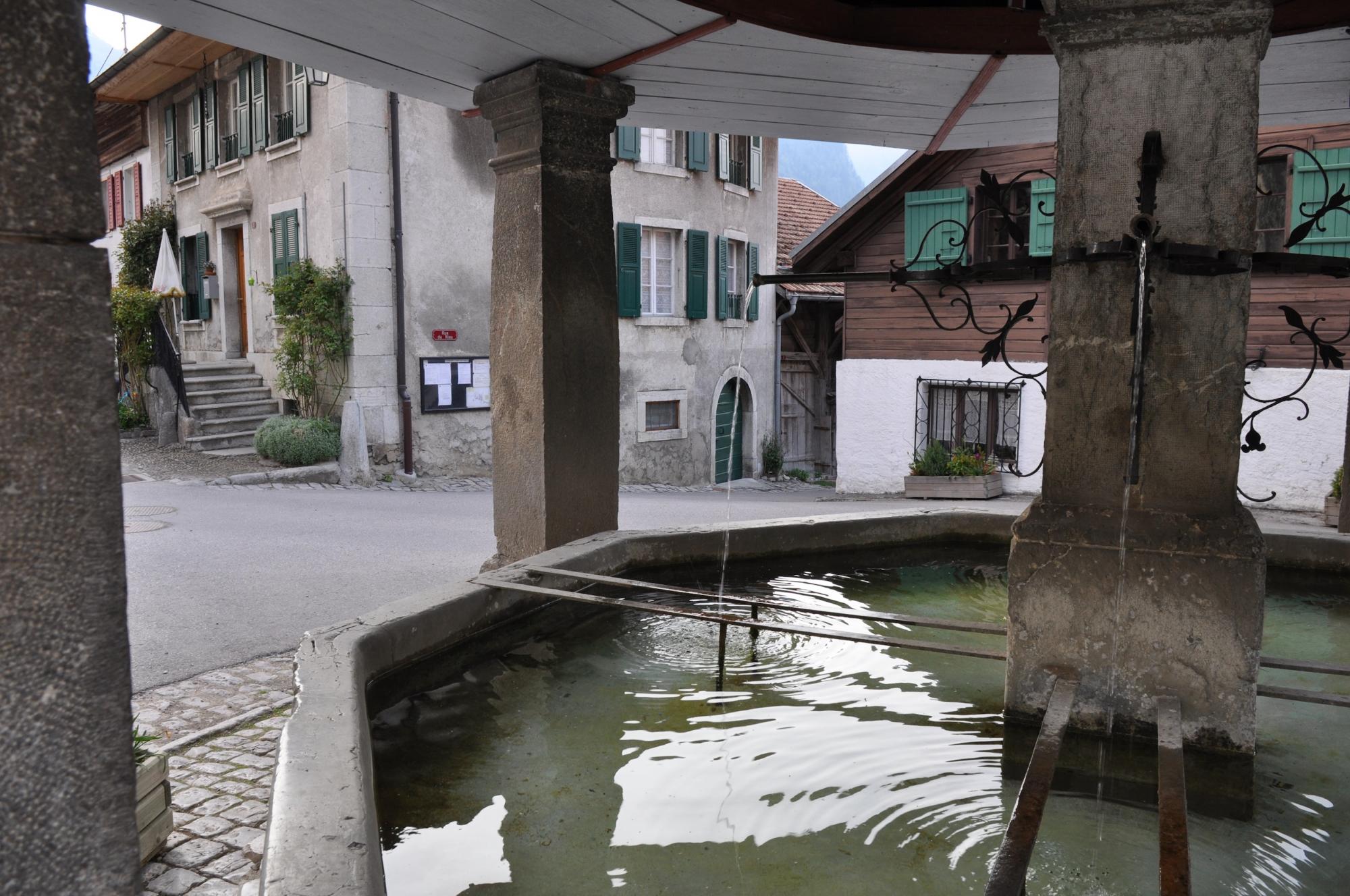 Il sentiero che porta da Lessoc a Montbovon e parte dalla sua famosa fontana (1796), la cui cupola è stata finanziata da un commerciante di formaggi originario del luogo e residente a Lione.