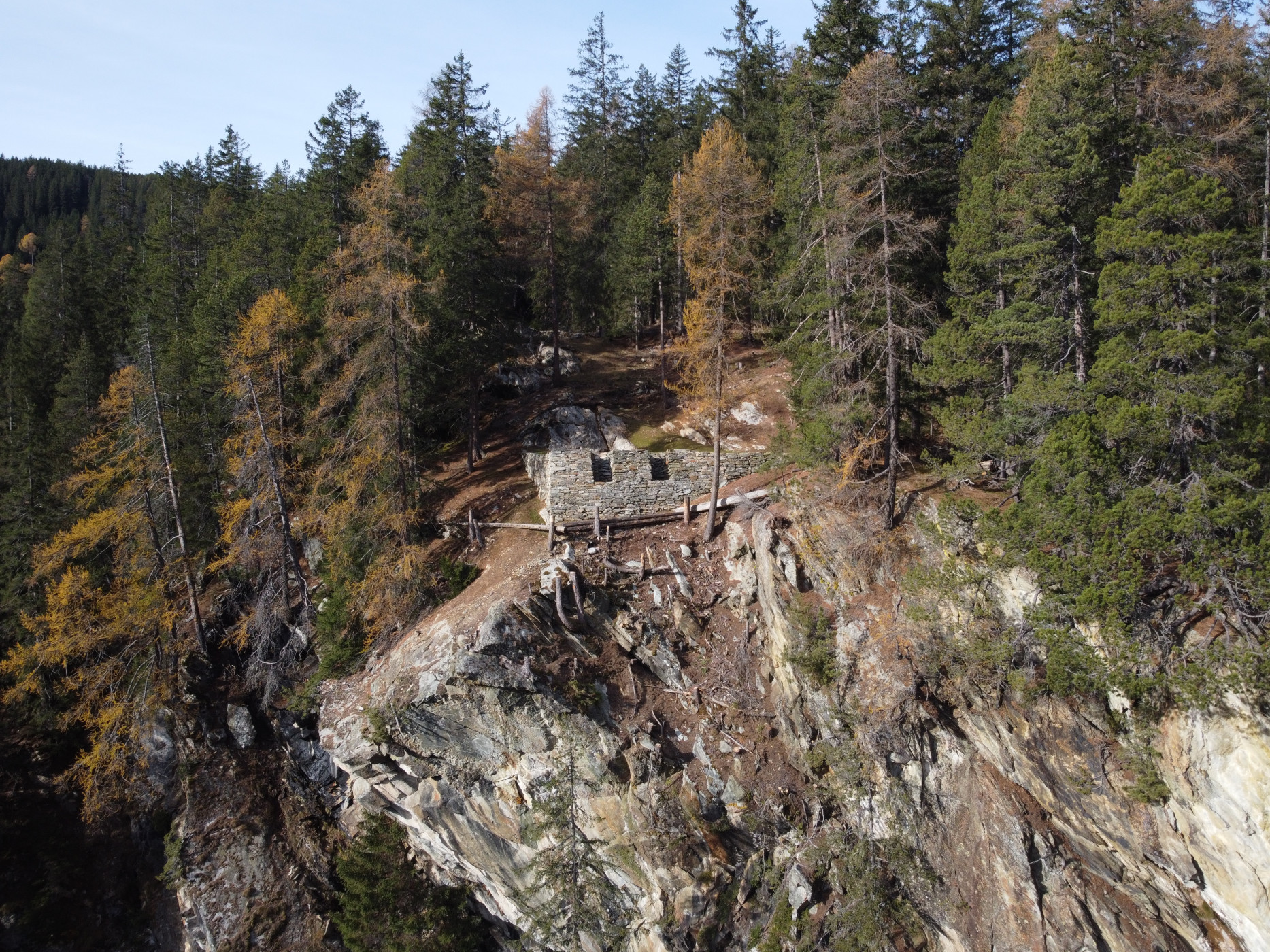 In Zusammenarbeit mit dem Naturpark Beverin, dem Erzminenverein Hinterrhein und dem Verein Freunde des Bergbaus in Graubünden konnte die historische Plattform mit Freiwilligen unter Anwendung traditioneller Bautechniken wiederhergestellt werden.