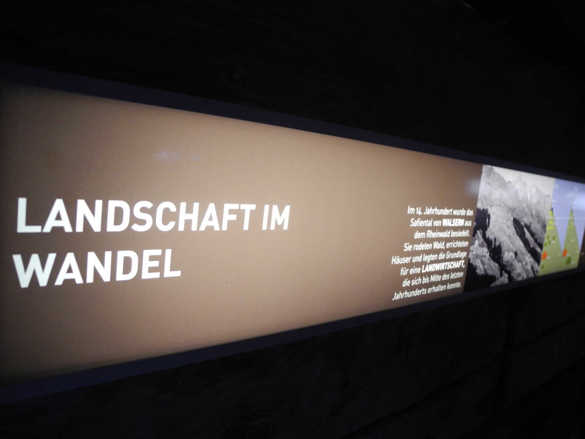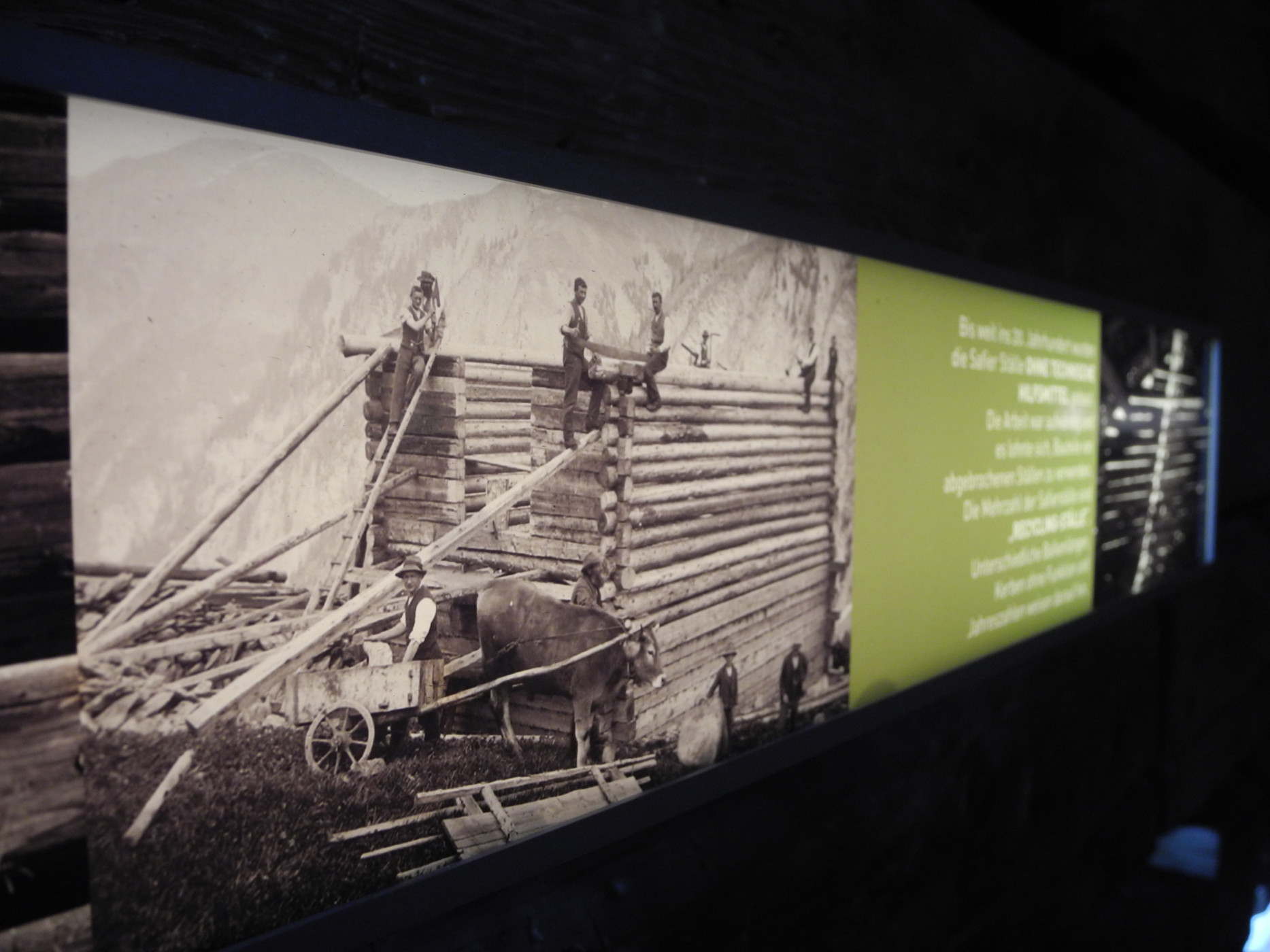 Um Interessierte und Besuchende über die verschiedenen Bautechniken der Safier zu informieren, wurde der Ausstellungsstall Turra erstellt. Darin können sich Interessierte über die Walser Bautechniken selbstständig informieren.