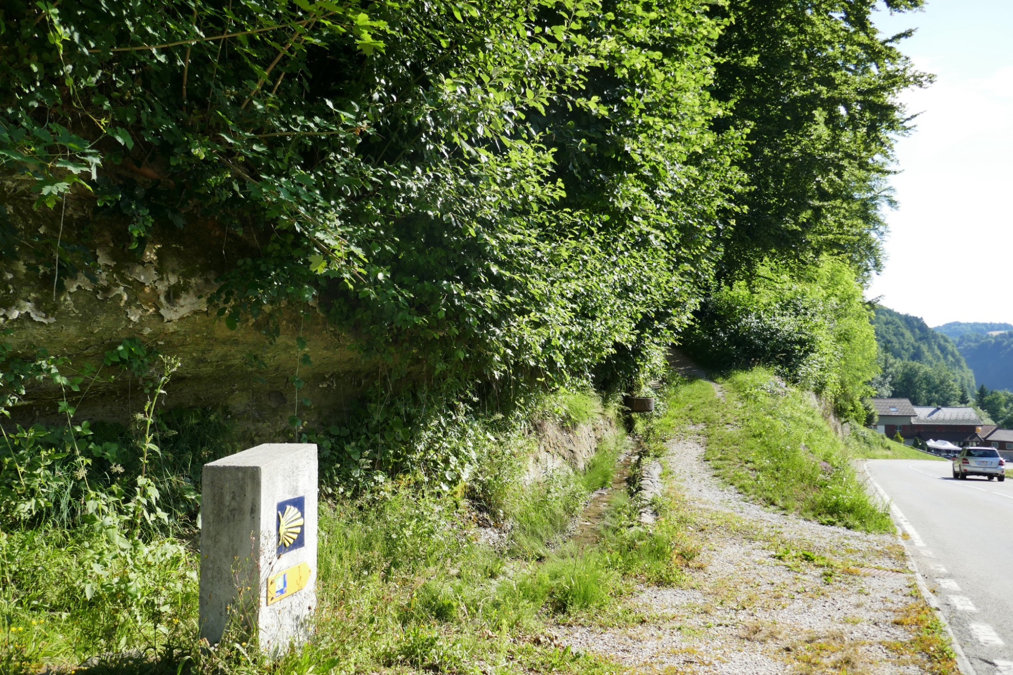 La 13ª tappa della Via Jacobi inizia a Schwarzenburg. Dopo pochi minuti su una strada asfaltata si raggiunge la frazione di Torhalten. Qui, presso il Sensegraben profondo quasi 150 metri, che segna anche il confine cantonale tra Berna e Friburgo, è stato conservato un insieme unico di antiche costruzioni viarie.