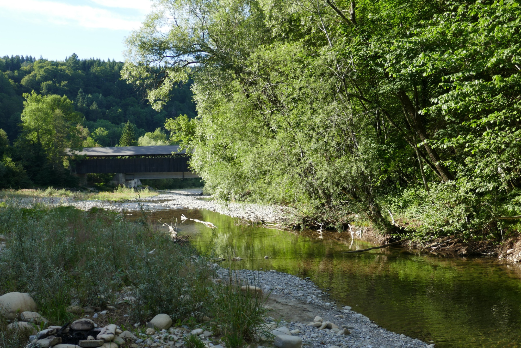 Proseguendo oltre i campi e passando vicino a singole fattorie si arriva alla città di Friburgo. Da qui si gode una splendida vista sulla città medievale e sulla dominante cattedrale di San Nicola. Dopo la discesa al Sense si attraversa l'ultimo ponte coperto in legno della città.