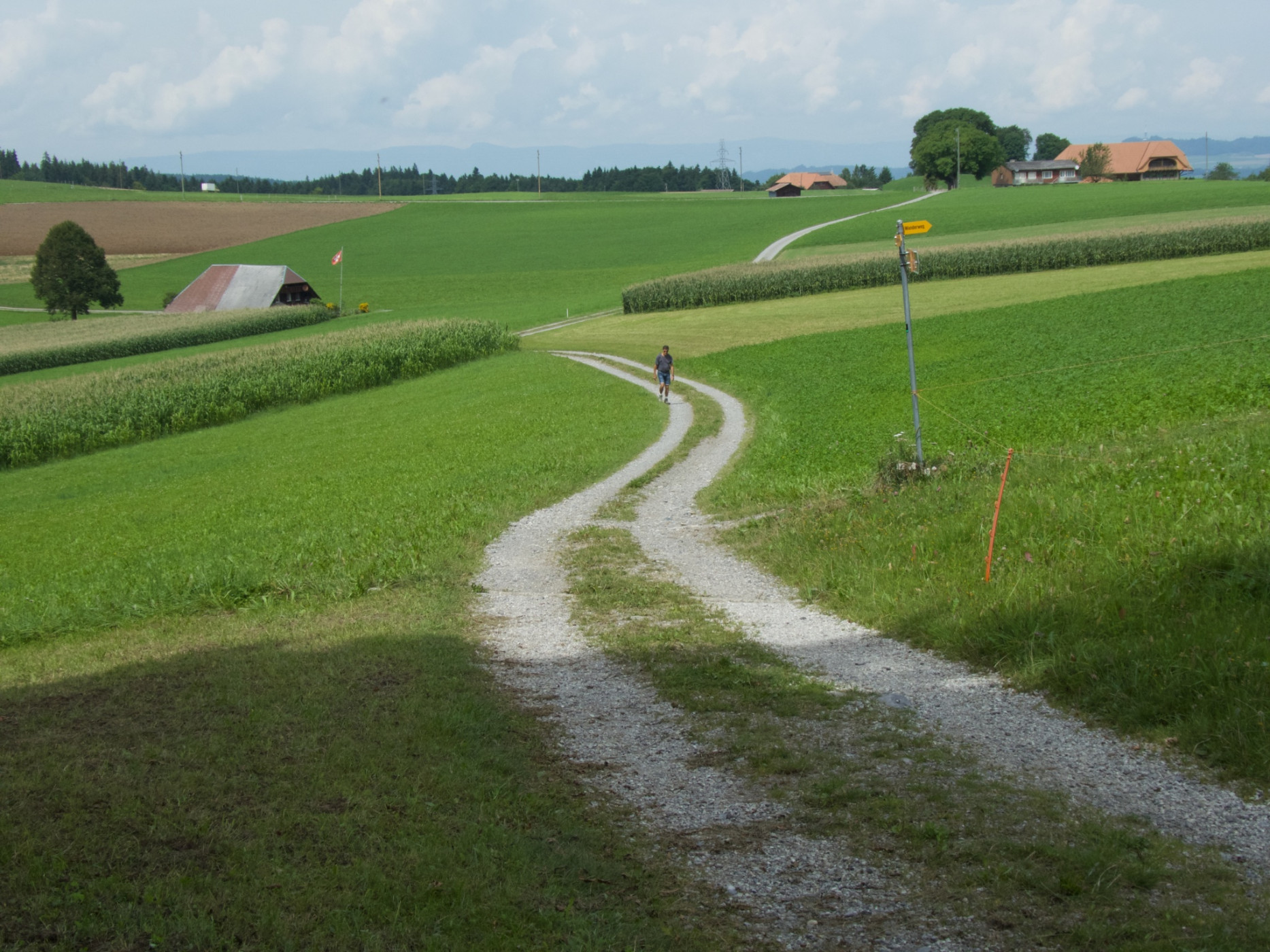 Il cammino è la meta, vale anche per questo tratto della Via Jacobi, che inizia al fossato degli orsi a Berna, segue inizialmente il corso del fiume Aare in salita e poi prosegue a mezza altezza lungo il Gurten. Dopo una salita ripida da Kehrsatz, raggiungiamo infine la zona del parco a Englisberg. Per lo più in salita attraverso boschi freschi e alternando discese verso i villaggi e le frazioni di Muhlern con le loro robuste case contadine, ci si dirige sempre verso il villaggio del monastero di Rüeggisberg. Di tanto in tanto si apre la vista sulla valle del Gürbetal e sullo sfondo sulla neve eterna della triade dell'Oberland Eiger, Mönch e Jungfrau. Particolarmente al monumento Tavel presso Leuenberg vale la pena fare una lunga sosta. A Mättiwil il nostro percorso si unisce al tragitto jacobino proveniente da Riggisberg. La vista verso sud sulla catena del Gantrisch si apre completamente.