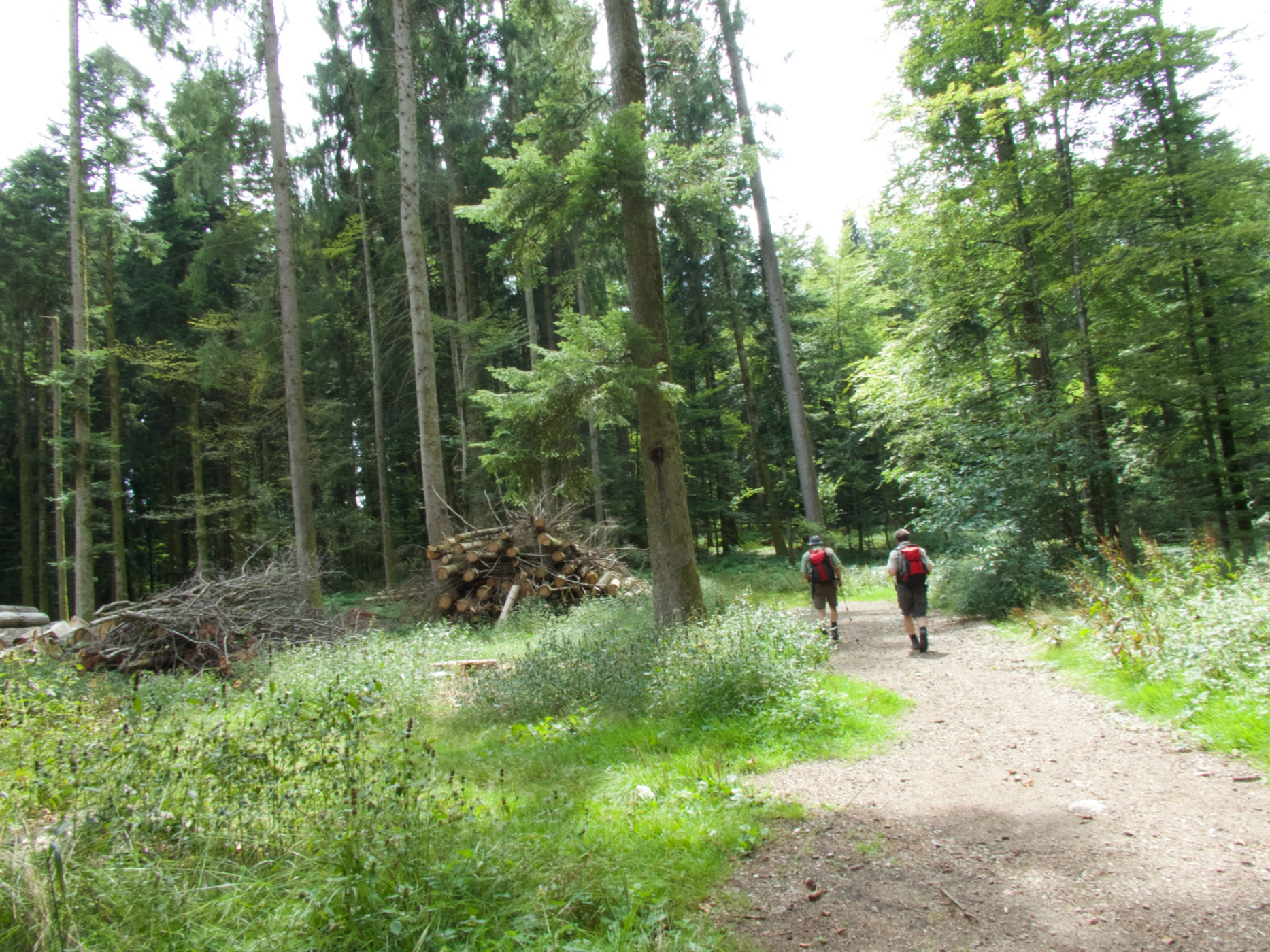 Naturpark Gantrisch - Con il capoluogo alle spalle, il percorso attraversa boschi e villaggi, sempre con vista sui caratteristici tre giganti bernesi Eiger, Mönch e Jungfrau.