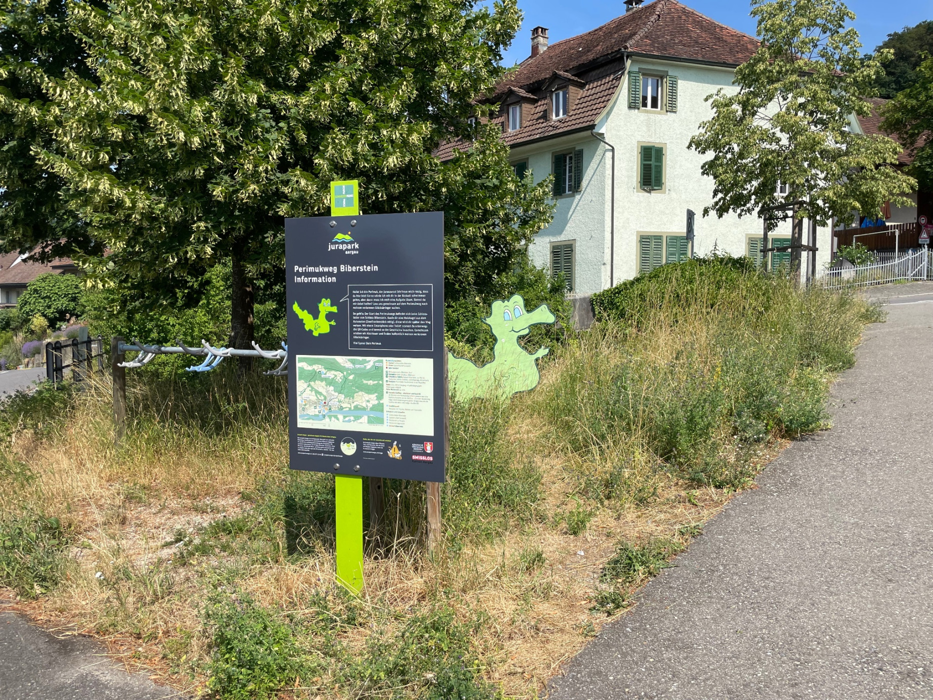 Perimuk, il Jurasauro, deve risolvere un compito: nel comune del Jurapark di Biberstein ha perso il suo portafortuna. Durante la ricerca incontra i suoi amici animali, chissà se possono aiutarlo? Anche tu puoi aiutare Perimuk nella sua ricerca. Per farlo, ascolta la prima parte dell'audio alla tabella di partenza presso il castello di Biberstein e poi segui le indicazioni lungo il percorso. Se segui la strada giusta, alla fine del percorso ti aspetta una sorpresa.