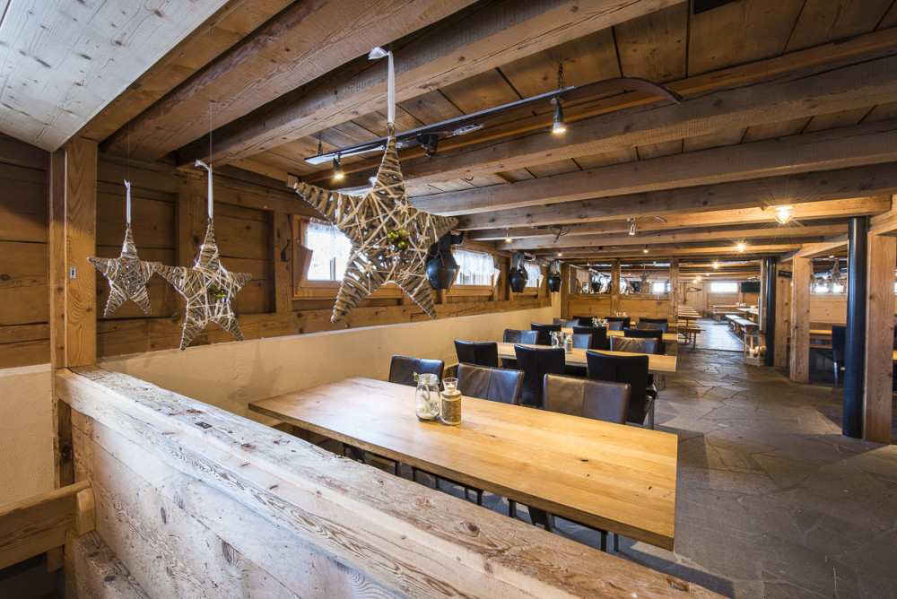 Cammina fino alla terrazza solare del rifugio sciistico Schwarzenegg e gusta un delizioso pranzo.
