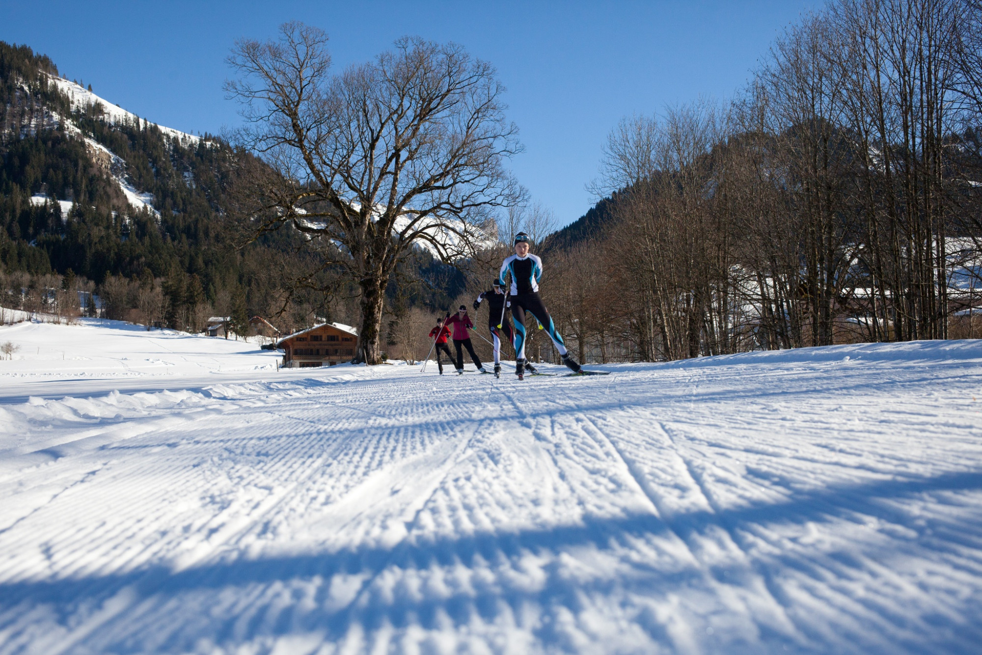 Sci di fondo in uno splendido paesaggio invernale lungo l'Emme, circondato da Hohgant, Schrattenfluh e Schibengütsch.