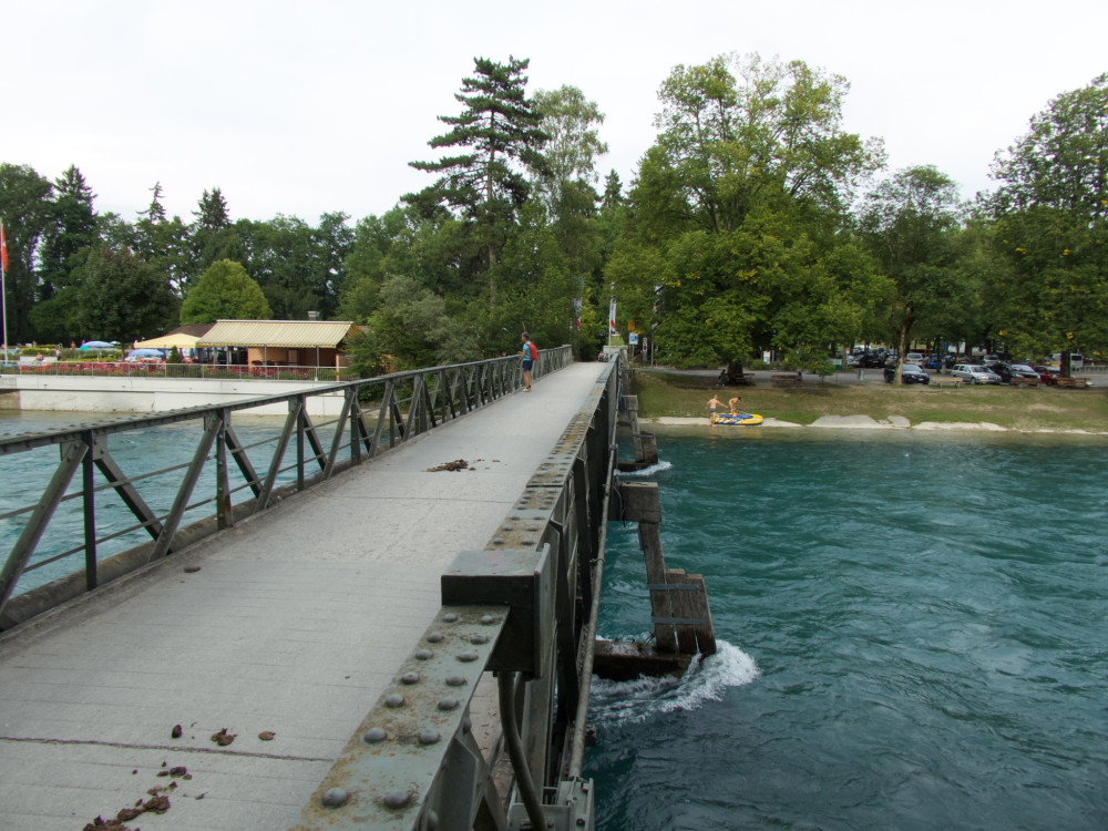Un dernier coup d'œil sur les Alpes bernoises avant de descendre dans le Schwarzwassergraben. Après avoir traversé le plus vieux pont en arc en béton du monde, on atteint Schwarzenburg. Le chemin passe par son plateau, ses forêts et ses prairies et mène au Guggershörnli, qui offre une belle vue.