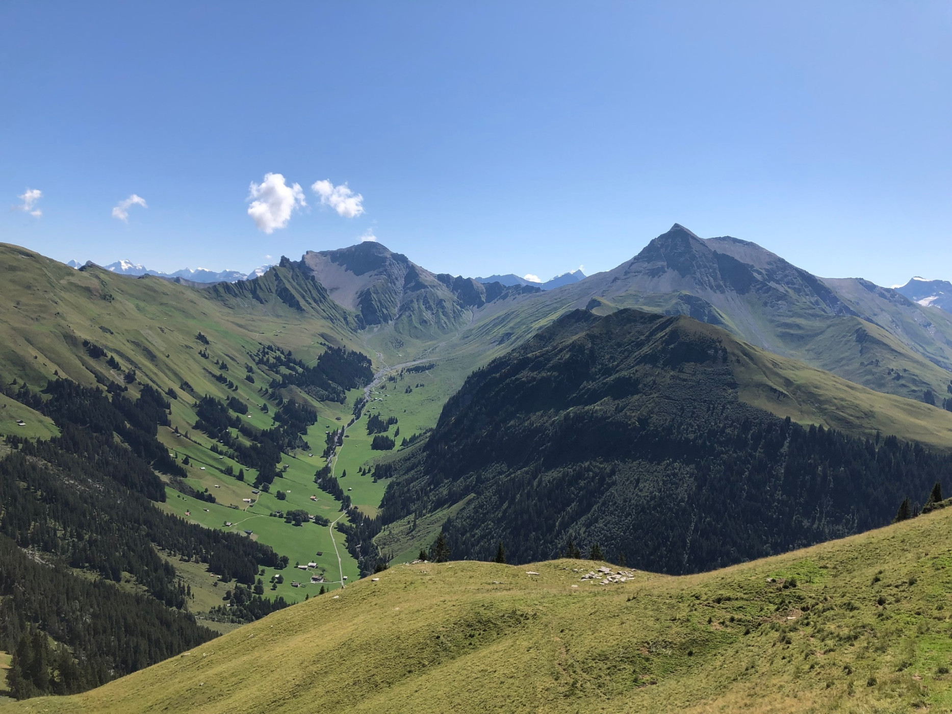 Alla Grimmifurggi hai una vista panoramica sulla parte posteriore della valle Diemtigtal e sull'alto Simmental e ti senti circondato da numerose vette montane impressionanti. Proprio sotto di te si estende la solitaria valle Färmeltal con la sua selvaggia asprezza – forse una meta escursionistica adatta per la tua prossima escursione?