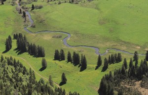 On y voit le cours de l’Orbe, qui coule depuis le Lac des Rousses dans un fond de vallée plat, tapissé de dépôts morainiques qui a imperméabilisé le sol. La rivière présente des méandres libres bien développés.