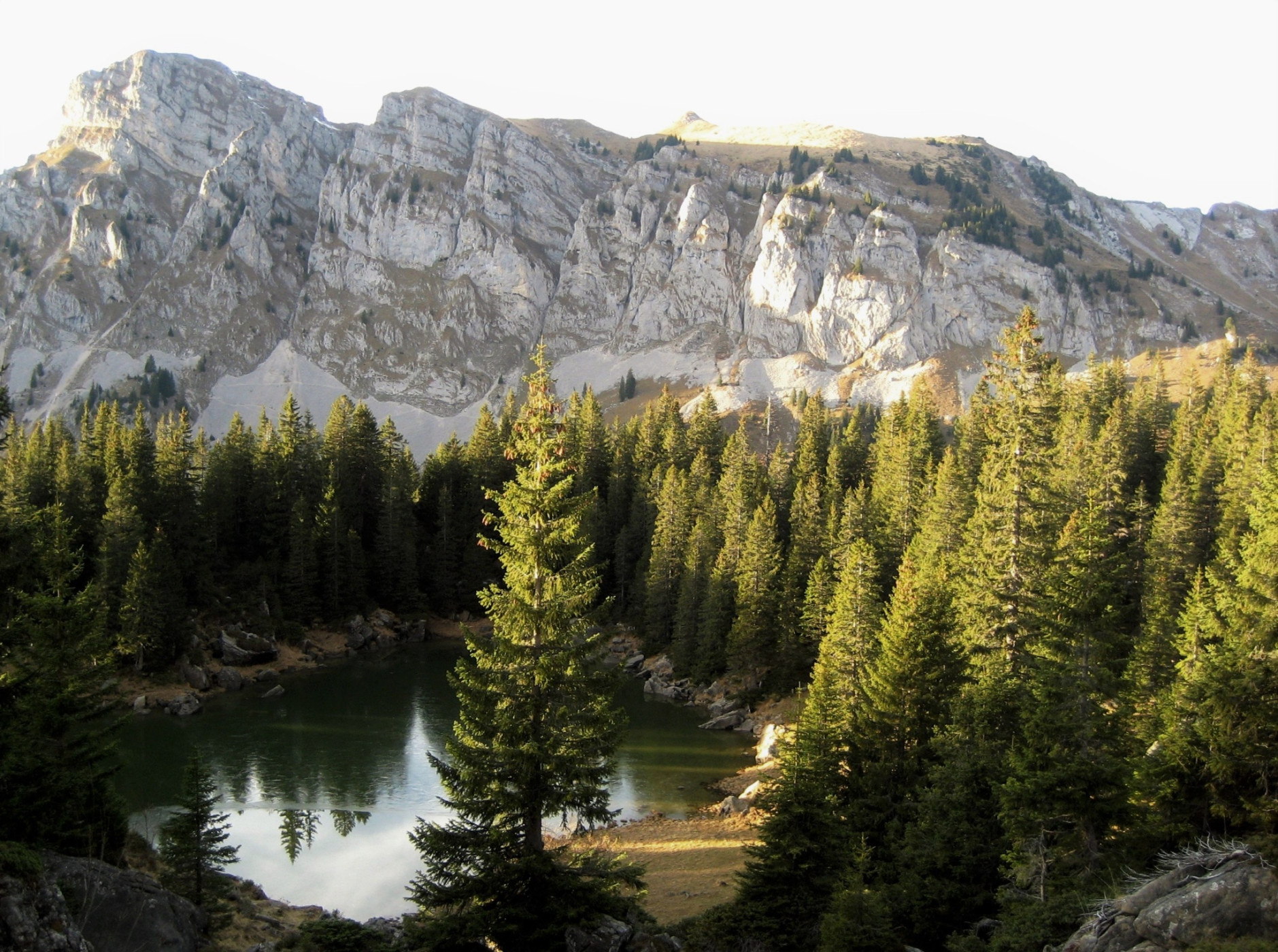 Nella zona paludosa è particolarmente significativo il vasto torboso pianeggiante Gürmschmoos con il grande edificio per la conservazione della lettiera. La sfortunata Wasserfallenegg con il Drago. Il drago è sepolto nel boschetto di pini a nord del cartello segnaletico (P.1729) all’interno del muro di pietra naturale. Il laghetto Änggelauenenseeli – l’unico lago naturale nell’Entlebuch – si trova nell’area di frana ai piedi del Fürstein.