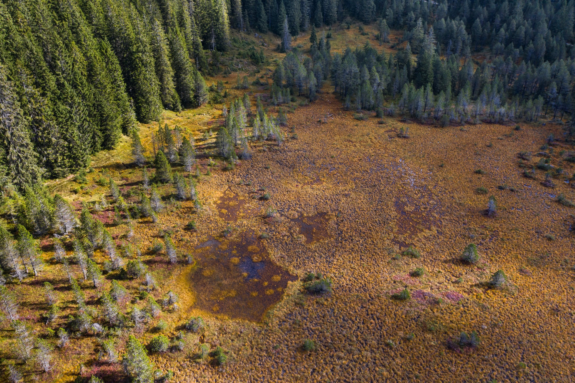 La più grande zona paludosa della Svizzera si estende parzialmente sul territorio contiguo di Obwaldo. Essa copre su 130 km2 anche la seconda più grande superficie totale di paludi alte e basse. Particolare importanza rivestono le torbiere alte, che sono le meglio sviluppate in tutta la Svizzera. Biotopi acquatici come stagni, laghetti, tappeti di sfagno, sorgenti, ruscelli e cascate sono presenti in grande varietà in questa tappa.