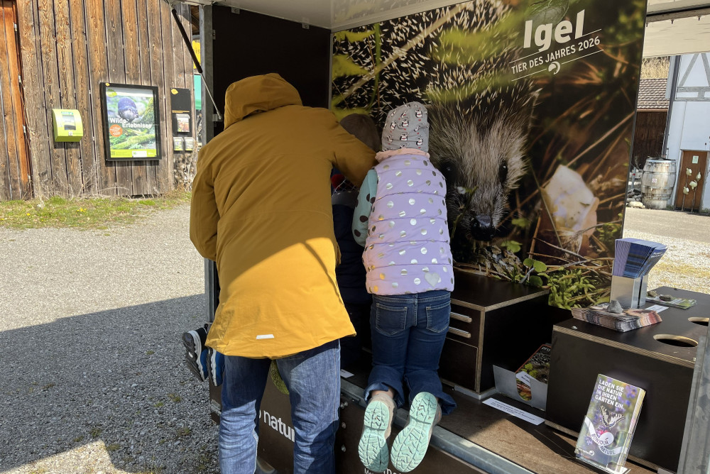 Das Naturmobile von Pro Natura präsentiert das Tier des Jahres 2026: der Braunbrustigel, auch Westigel genannt.